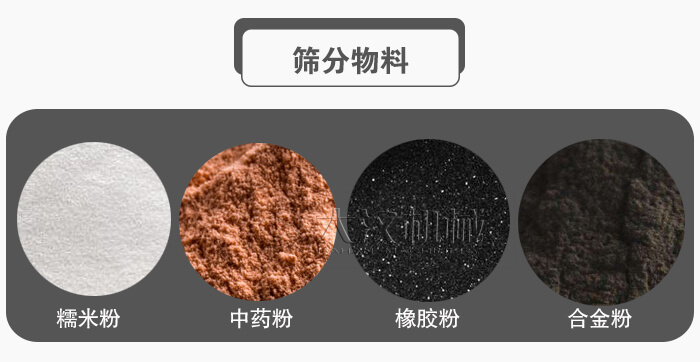 粉末振動(dòng)篩主要由進(jìn)料口、防塵蓋、出料口、束環(huán)、篩網(wǎng)、配重塊、上部重錘、振動(dòng)體、振動(dòng)電機(jī)、彈簧、下部重錘、機(jī)座等部分組成。