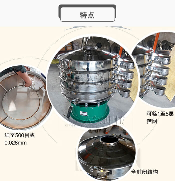 粉末振動(dòng)篩作為一種高精度細(xì)粉篩分設(shè)備,又叫粉末旋振篩,化工粉末振動(dòng)篩,其篩粉精度高,全密閉結(jié)構(gòu),可以保證粉末在篩分過程中出現(xiàn)粉塵污染,加裝彈跳球、超聲波等請(qǐng)網(wǎng)裝置,可以減少粉末因比重強(qiáng)、含水量高等造成的堵網(wǎng)現(xiàn)象。我們的粉末振動(dòng)篩在機(jī)身與物料接觸部分均采用304不銹鋼材質(zhì),機(jī)座部分則采用普碳鋼材,也可根據(jù)客戶的要求設(shè)計(jì)成304不銹鋼材質(zhì),既可以單層除雜、多層分級(jí)、也可固液分離過濾使用,篩面層數(shù)1-5層,可分2-6個(gè)出料口,篩分精度高、效率高。