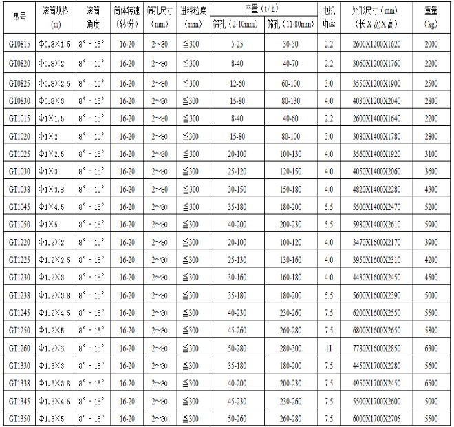 GTS系列礦用滾筒篩技術參數: